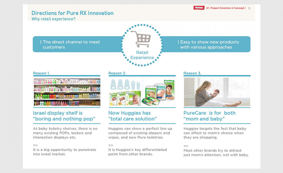 리테일 공간에서의 브랜드 경험디자인이 생소한 이스라엘 마켓에 디자인을 통한 새로운 혁신의 가능성을 제시하고 Huggies의 브랜드 인지 및 매출향상에 기여할 수 있었습니다.